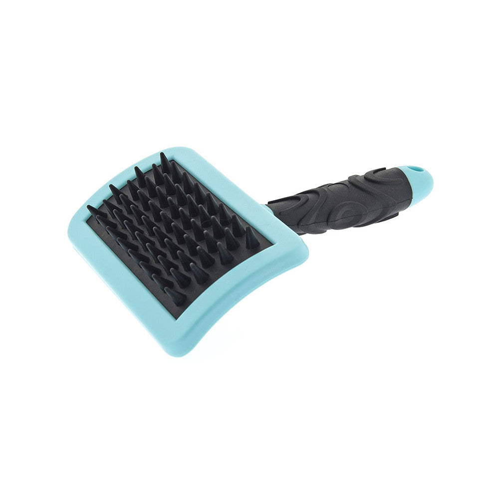 Esta prática escova tem pontas médias de borracha, ideal para a fazer uma limpeza ou massajar o seu patudo.