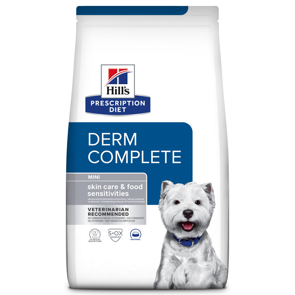 Hill's Prescription Diet Derm Complete é uma solução nutricional clinicamente comprovada que controla eficazmente a comichão, independentemente de esta ser de causa alimentar ou ambiental. Com resultados desde a primeira refeição, é um alimento formulado com ingredientes deliciosos, com um sabor irresistível para o patudo. Uma nutrição com ingredientes limitados e com uma única fonte de proteína animal, com complexo Histaguard, uma combinação patenteada de bioativos e fitonutrientes e níveis elevados de ácidos gordos essenciais.
