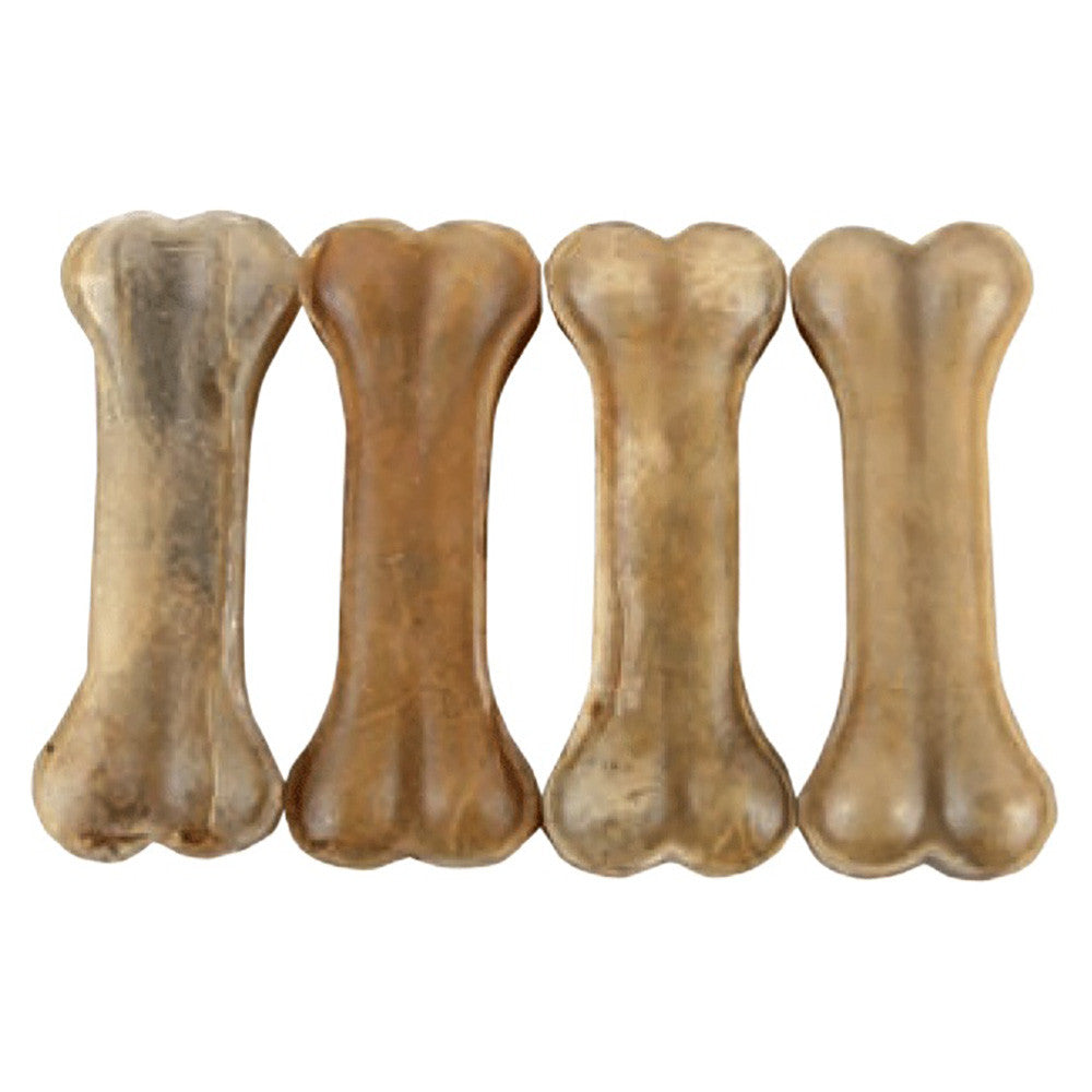 Ossos de pele de bovino prensada. Satisfazem o instinto de mastigação dos cães e contribuem para dentes fortes e saudáveis.